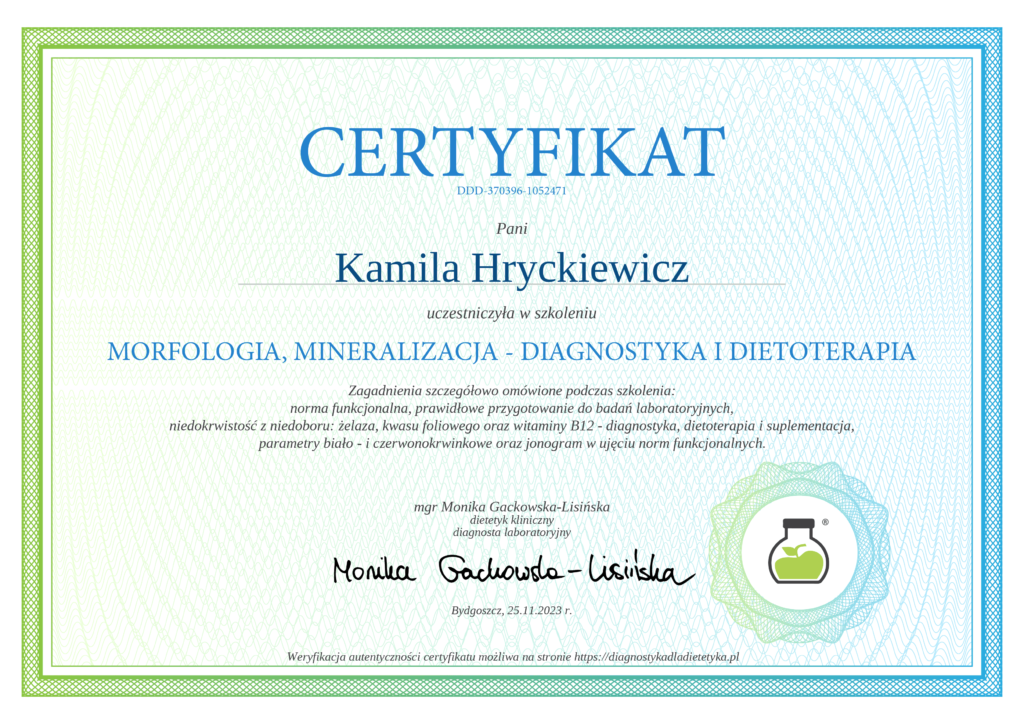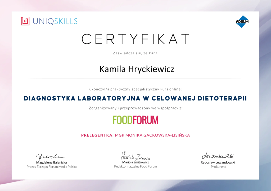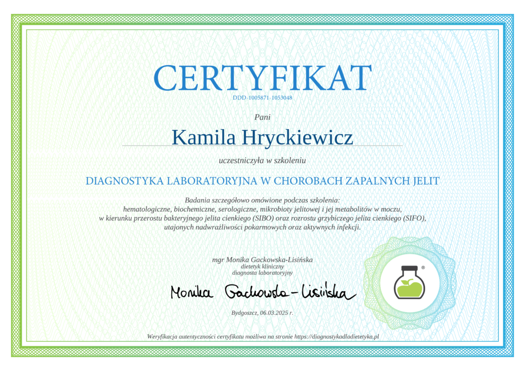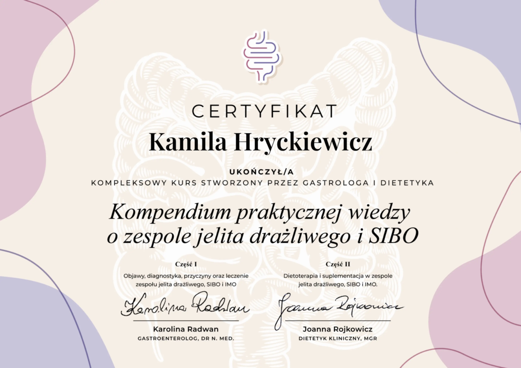 Uważam, że dieta powinna być przede wszystkim dopasowana do każdego indywidualnie. Dzięki połączeniu wiedzy z zakresu dietetyki klinicznej oraz psychodietetyki, potrafię spojrzeć na Twoje zdrowie w sposób całościowy. To pozwala mi na stworzenie planów żywieniowych, które nie tylko wspierają poprawę kondycji fizycznej, ale także pomagają w pracy z emocjami związanymi z jedzeniem.